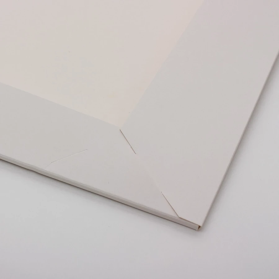 podwójny grzbiet, elegancki o zabarwieniu ecrue, wycięcia na wizytówkę